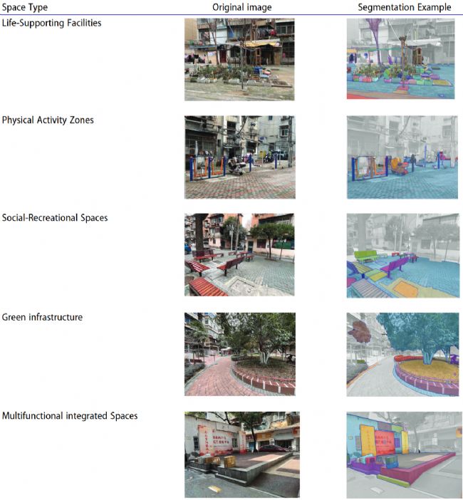 研究以武漢市武昌區(qū)9個(gè)單位社區(qū)為樣本(表1),基于馬斯洛需求理論將公共空間分為五類功能類型(如生活支持設(shè)施、體育區(qū)等)(表2),并標(biāo)記高/中/低三級清潔度。技術(shù)路徑借鑒了前人研究,空間分類通過SAM2模型實(shí)現(xiàn)圖像分割,清潔度評價(jià)經(jīng)專家雙盲評分驗(yàn)證(Kappa=0.442)。實(shí)驗(yàn)刺激材料包含30張圖片(2 張 / 功能類型 ×5 類 ×3 清潔度),且無重復(fù)地呈現(xiàn)。