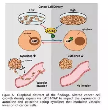綜合上述實驗結(jié)果,本研究闡明了一條清晰的調(diào)控通路:腫瘤細(xì)胞生長密度的變化,通過調(diào)節(jié)Hippo信號通路核心激酶LATS1的活性,影響其下游效應(yīng)因子YAP的轉(zhuǎn)錄共激活功能。YAP活性的改變進(jìn)一步調(diào)控了包括IL-8、CXCL1/2/3等在內(nèi)的特定細(xì)胞因子組的表達(dá)與分泌。這些因子通過自分泌作用于腫瘤細(xì)胞自身,并通過旁分泌作用于微環(huán)境中的內(nèi)皮細(xì)胞,共同構(gòu)成一個促侵襲微環(huán)境,最終決定性地影響了腫瘤細(xì)胞的血管侵襲能力。該機(jī)制整合示意圖如下所示。