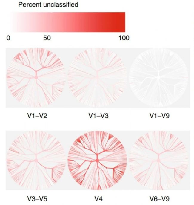 研究表明,與二代16S靶向單個到三個亞區(qū)測序的V4、V6、V1-V3、V3-V5等區(qū)域相比,V1-V9全長區(qū)域序列對菌群分類的識別注釋能力最好,不同的亞區(qū)測序均在不同的細菌類群中顯示出分類的偏差1。