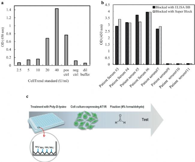 • 實(shí)驗(yàn)室自建ELISA采用親和純化的AT1R活性形式抗原,AOB處理未引起信號(hào)抑制(圖4d)。