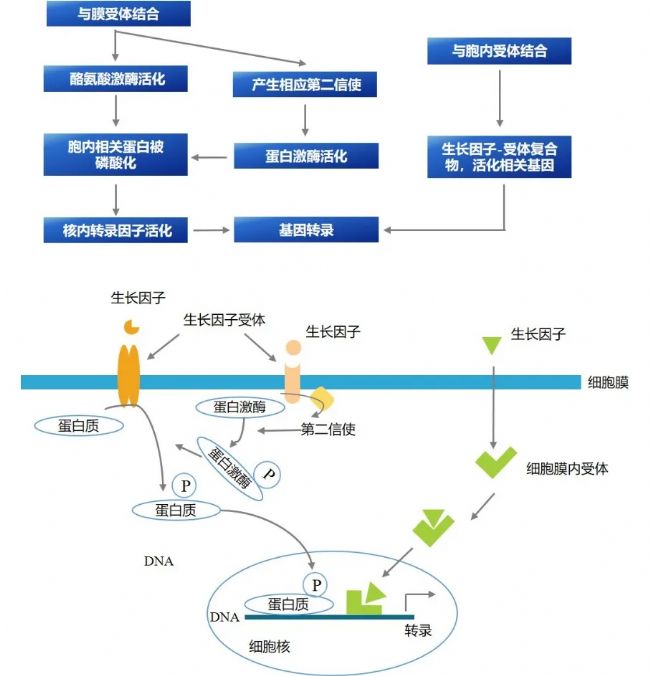 β-NGF通過非共價鍵形成同源二聚體發(fā)揮生理作用。其三維結(jié)構(gòu)的穩(wěn)定性高度依賴于分子內(nèi)三對二硫鍵的正確形成,這一特征是其生物活性所必需的結(jié)構(gòu)基礎(chǔ)。β-NGF通過與兩類跨膜受體——高親和力的TrkA受體和低親和力的p75神經(jīng)營養(yǎng)因子受體——的特異性結(jié)合,激活下游多條信號通路,從而實現(xiàn)對靶細胞的調(diào)控。