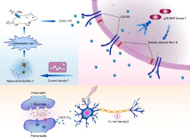 圖 3:Nav1.8 通道通過 CXCL13/CXCR5 通路導致神經(jīng)元過度興奮和疼痛超敏
