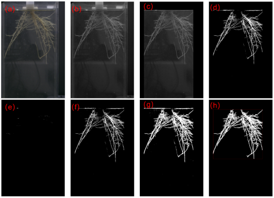 如圖2所示,采集全景視角相機(jī)下的根系分割效果圖;