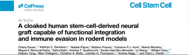 本文配圖均來源于:Chiara Pavan 等. A cloaked human stem-cell-derived neural graft capable of functional integration and immune evasion in rodent models. Cell Stem Cell, 2025, 32 (5): 710-726.e8. DOI: 10.1016/j.stem.2025.03.008