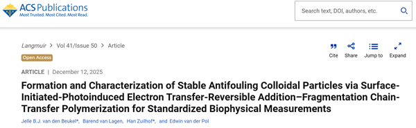 荷蘭阿姆斯特丹大學(xué)與天津大學(xué)聯(lián)合科研團(tuán)隊(duì)在《Langmuir》發(fā)表題為 “Formation and Characterization of Stable Antifouling Colloidal Particles via Surface-Initiated-Photoinduced Electron Transfer-Reversible Addition–Fragmentation Chain-Transfer Polymerization for Standardized Biophysical Measurements” 的研究成果。