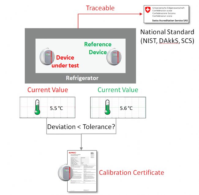 校準(zhǔn)是指將被測(cè)設(shè)備(如數(shù)據(jù)記錄儀、傳感器)與可溯源的參考標(biāo)準(zhǔn)進(jìn)行可靠、可重復(fù)且有記錄的比較。參考標(biāo)準(zhǔn)通常由認(rèn)可的實(shí)驗(yàn)室定期校驗(yàn)(如瑞士SAS/SCS、美國(guó)NIST、德國(guó)DaaKs、英國(guó)UKAS等)。