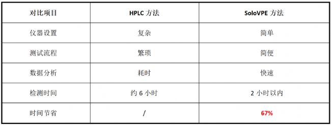 表2. SoloVPE和HPLC方法對(duì)比