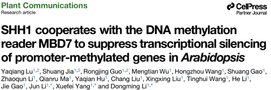 參考文獻(xiàn):Lu Y, Jia S, Guo R, Wu M, Wang H, Gao S, Li Z, Ma Q, Hu Y, Liu C, Liu X, Wang T, Li H, Gao J, Jun L, Yang X, Li D. SHH1 cooperates with the DNA methylation reader MBD7 to suppress transcriptional silencing of promoter-methylated genes in Arabidopsis. Plant Commun. 2025 Oct 8:101545. doi: 10.1016/j.xplc.2025.101545.