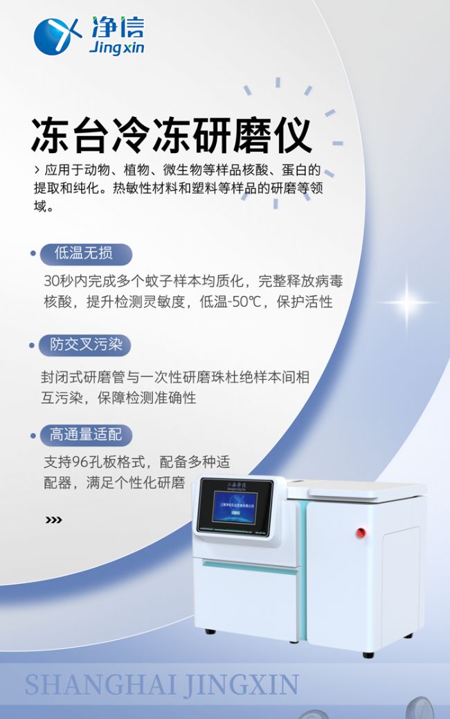 凈信凍臺(tái)冷凍研磨儀以標(biāo)準(zhǔn)化、自動(dòng)化的研磨方案,助力疾控中心構(gòu)建更快速的蚊媒病毒響應(yīng)體系。它不僅解放了實(shí)驗(yàn)室人力,更通過(guò)提升樣本處理質(zhì)量,為流行病學(xué)研判提供可靠技術(shù)支撐,默默守護(hù)著公共衛(wèi)生安全的第一道防線。