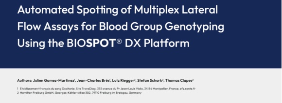 Biofluidix公司發(fā)布了一份新的BIOSPOT DX 精準納升點樣平臺應用指南,利用等位基因特異性的多重側(cè)向流檢測(LFA)技術(shù),對Kidd、Duffy、MNS 三大血型系統(tǒng)的 7 個關鍵等位基因分型。LATE-PCR 擴增技術(shù)與自動化點樣方案的融合,實現(xiàn)“無需 DNA 提取、無需專業(yè)解讀”,提高了檢測效率,減少了人為誤差和實際損耗。