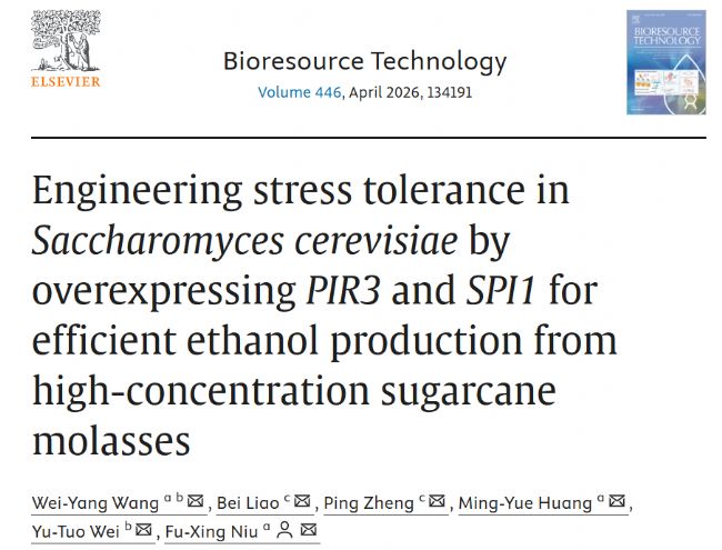近日,廣西科技大學(xué)生化學(xué)院牛福星博士科研團(tuán)隊(duì)在借助ARTP誘變選育糖蜜魯棒型菌株的基礎(chǔ)上對其機(jī)理進(jìn)行分析,在國際雙一區(qū)TOP期刊Bioresource Technology(非OA模式,IF=9.0)發(fā)表“Engineering stress tolerance in Saccharomyces cerevisiae by overexpressing PIR3 and SPI1 for efficient ethanol production from high-concentration sugarcane molasses”突出性研究成果。