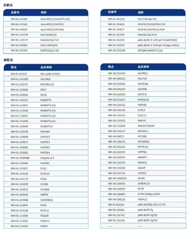 南模生物成品模型資源庫(kù)還擁有品類(lèi)齊全的代謝類(lèi)靶點(diǎn)基因人源化修飾模型,可廣泛應(yīng)用于各類(lèi)代謝性疾病的基礎(chǔ)研究與藥物研發(fā),詳細(xì)模型信息詳見(jiàn)下表: