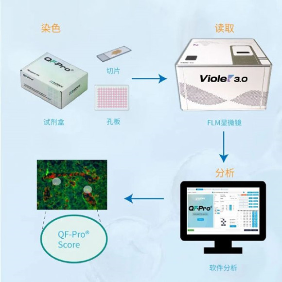 圖3 左圖:HAWK實驗染色流程;右圖:HAWK QF-Pro檢測原理示意圖
