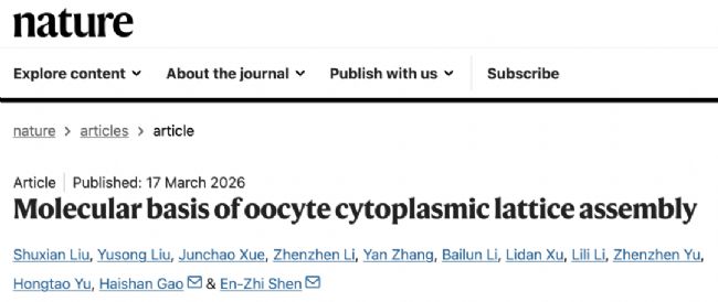 2026 年 3 月,西湖大學(xué)科研團(tuán)隊(duì)在國(guó)際頂刊《Nature》上發(fā)表了一篇題為“Molecular basis of oocyte cytoplasmic lattice assembly”的研究論文。