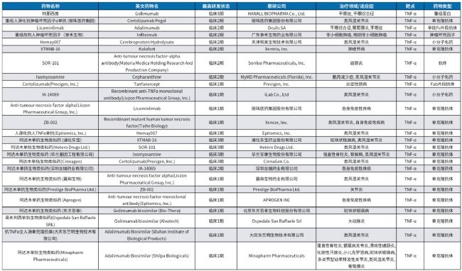 表1. 部分靶向TNFα靶點(diǎn)藥物研發(fā)進(jìn)展