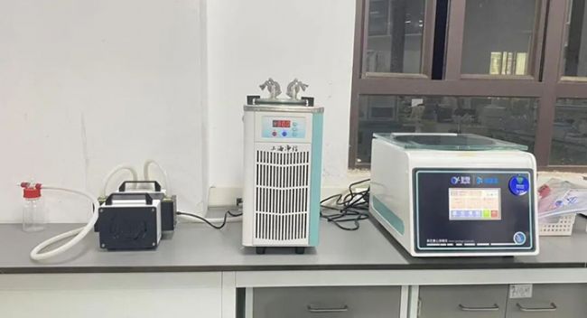 1. 準備真空離心濃縮儀(JX-ZLN-E)一臺,配-50℃ JX-DWLJ-A +隔膜泵、250mL離心管4個,4孔的適配器一個,加入乙酸乙酯208克進行濃縮。
