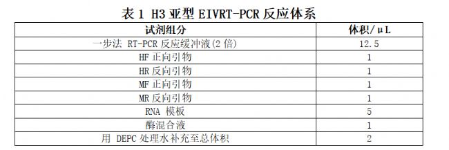 注:反應(yīng)體系和反應(yīng)條件,可根據(jù)所使用RT-PCR試劑盒的說明書,適當(dāng)調(diào)整各試劑用量及反應(yīng)溫度和時(shí)間。