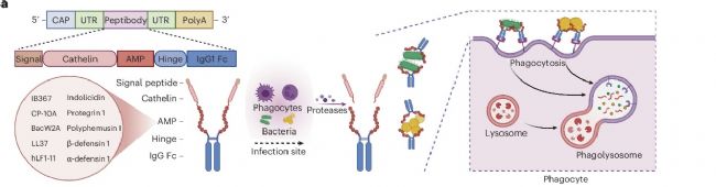 為解決抗菌肽穩(wěn)定性差、毒性高的問題,團隊將其改造為“肽體(peptibody)”形式,相當于給抗菌肽加了雙重保險: