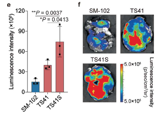 圖2 TS41S LNP 在肺炎肺組織中的遞送效果