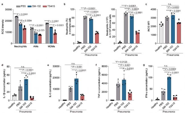 圖4 TS41S LNP PB9 mRNA在急性肺炎模型的治療作用
