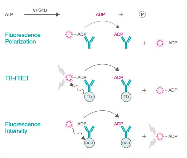 Transcreener® ADP2檢測技術(shù)采用均相熒光偏振法,可實現(xiàn)VPS4B酶活性的直接定量測定。