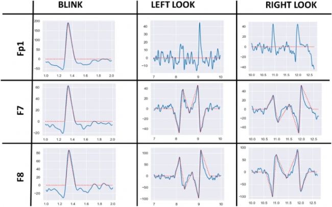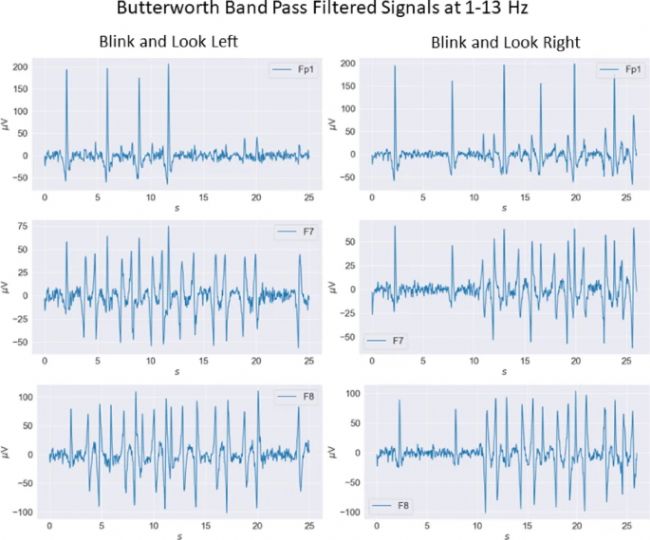 開發(fā)離線與實(shí)時通用的檢測算法,核心流程:先將信號1-13Hz濾波并初始化參數(shù);以3×100數(shù)據(jù)點(diǎn)為窗口檢測,優(yōu)先判斷Fp1通道是否超眨眼閾值,觸發(fā)則記錄眨眼事件;未檢測到眨眼時,驗(yàn)證F7、F8通道峰谷/相位特征,符合則記錄左/右看事件;Fp1超80μV但未達(dá)主閾值時判定為微弱眨眼;無事件觸發(fā)則保留窗口數(shù)據(jù)用于下次檢測。