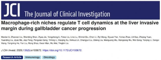 近日,上海交通大學醫(yī)學院附屬仁濟醫(yī)院劉穎斌、李茂嵐團隊聯(lián)合臨港實驗室魏武團隊、上海交通大學邵榮團隊、香港大學萬鈞團隊,在國際權威學術期刊《Journal of Clinical Investigation》發(fā)表題為《Macrophage-rich niches regulate T cell dynamics at the liver invasive margin during gallbladder cancer progression》的最新研究成果。該研究整合單細胞轉錄組與空間轉錄組技術,首次系統(tǒng)繪制膽囊癌肝侵犯微環(huán)境空間細胞圖譜,揭示腫瘤-肝臟交界區(qū)域免疫細胞動態(tài)調控核心機制,為膽囊癌精準診療與免疫治療創(chuàng)新提供全新思路。