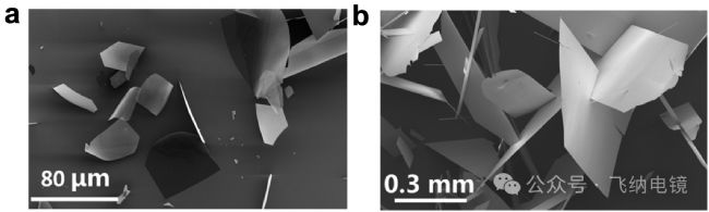 通過物理氣相沉積(PVD)方法制備的層狀 MoO₃ 的生長與表征。(a)是在 740 °C 條件下,于硅基底上生長的垂直取向MoO₃ 納米片的掃描電子顯微鏡(SEM)圖像;(b)是 在 790 °C 條件下,于硅基底上生長的 MoO₃ 納米片的 SEM 圖像。飛納 Phenom Pharos 場發(fā)射電鏡在研究早期階段用于快速篩查樣品形貌與垂直取向結(jié)構(gòu),為后續(xù)高分辨 TEM 分析提供了精準(zhǔn)定位與參數(shù)優(yōu)化依據(jù)。