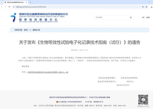 [1] NMPA CFDI. 《生物等效性試驗電子化記錄技術(shù)指南(試行,2025.12)》.