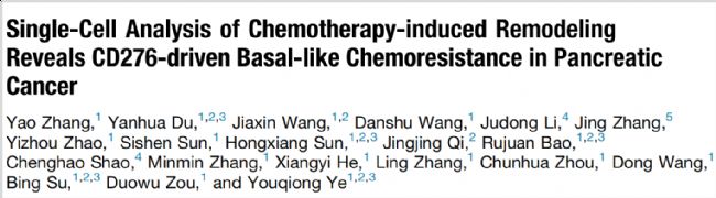 【1】Zhang Y, Du Y, Wang J., et al. Single-Cell Analysis of Chemotherapy-induced Remodeling Reveals CD276-driven Basal-like Chemoresistance in Pancreatic Cancer. Gastroenterology. 2026 Feb 17:S0016-5085(25)06097-4. doi: 10.1053/j.gastro.2025.09.04