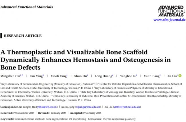湖北工業(yè)大學生命科學與健康工程學院、武漢大學化學院生物醫(yī)用高分子教育部重點實驗室、中國科學院武漢病毒研究所病毒學與生物安全國家重點實驗室等單位的研究成果“A Thermoplastic and Visualizable Bone Scaffold Dynamically Enhances Hemostasis and Osteogenesis in Bone Defects”(一種熱塑性可視化骨支架動態(tài)增強骨缺損的止血和成骨)在《Advanced Functional Materials》(IF=19)雜志上發(fā)表。平生公司的離活一體CT(NEMO)在論文中提供大鼠脛骨圖像和定量分析。