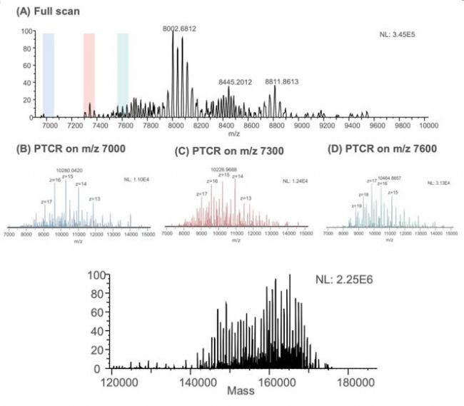 Nanodisc中膜蛋白的DIA-PTCR 譜圖及解卷積結果