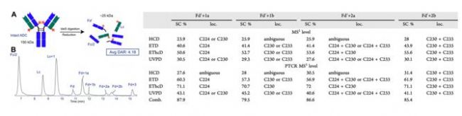 此外,兩種或多種碎裂/活化方式的結合,產(chǎn)生豐富的碎片形式,可明確亞基上的 payload 結合位點。