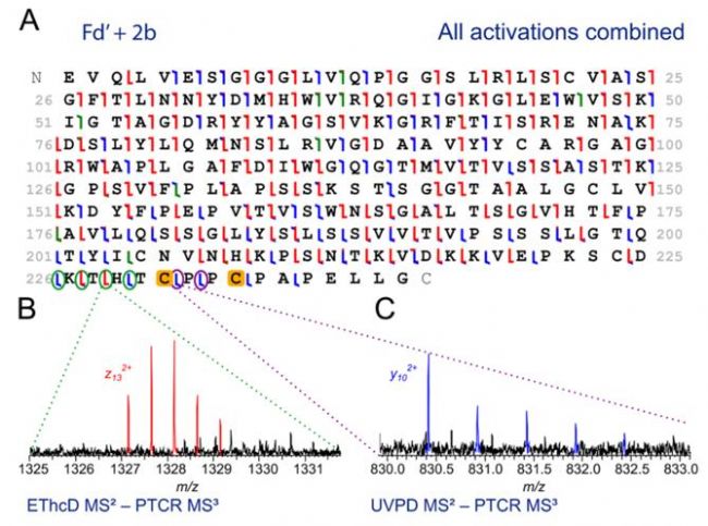 UVPD可斷裂更多類型化學鍵,獲得豐富的各類碎片離子,在Top-down分析中可作為正交碎裂方式使用。
