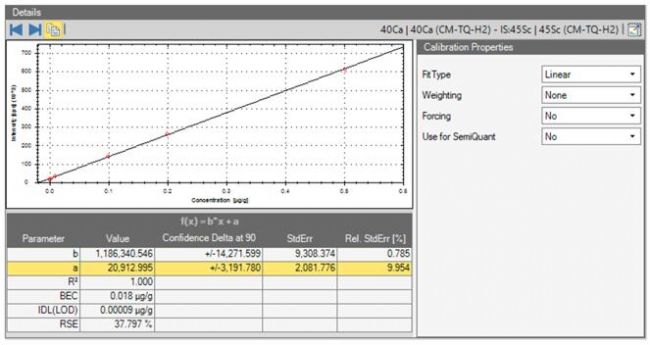 圖:40Ca (CM-TQ-H2)模式下高純金-標(biāo)準(zhǔn)加入-標(biāo)準(zhǔn)曲線(方法指導(dǎo)要求:0.0~0.5ug/g)