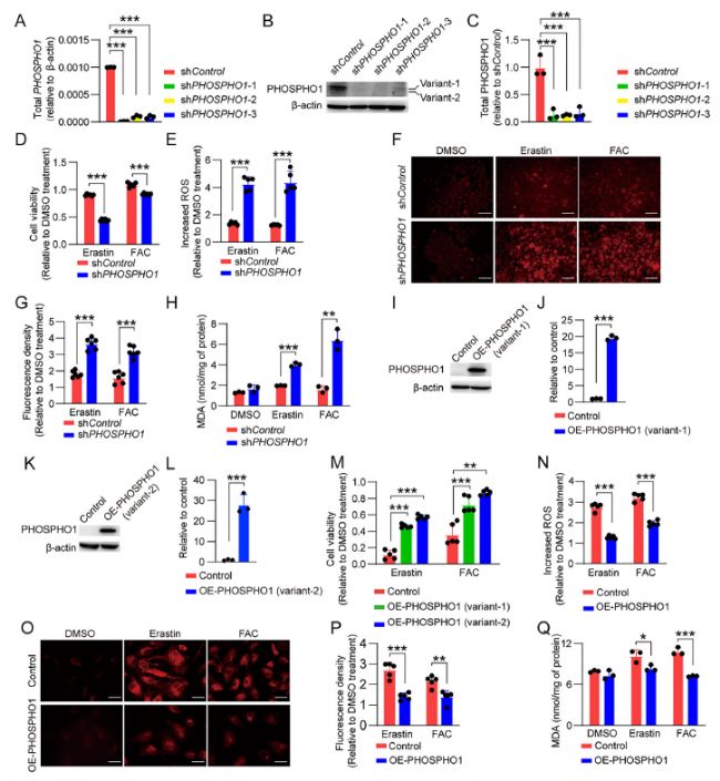 質(zhì)譜篩選發(fā)現(xiàn) iRPE 細胞中 PHOSPHO1 表達顯著升高(圖 3D-G)。功能驗證顯示: