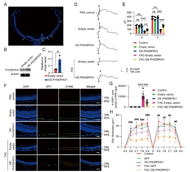 在 FAC 誘導(dǎo)的大鼠 AMD 模型中,過表達 PHOSPHO1 可: