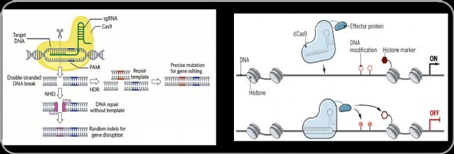 圖1.CRISPR/Cas9(左)與CRISPR/dCas9(右)