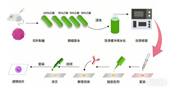 免疫組織化學(xué)技術(shù)廣泛應(yīng)用于病理學(xué)診斷、細(xì)胞生物學(xué)研究及蛋白質(zhì)功能分析等領(lǐng)域,為探討疾病發(fā)生機(jī)制、鑒別細(xì)胞類型、定位特定蛋白表達(dá)提供了重要的實(shí)驗(yàn)依據(jù)。