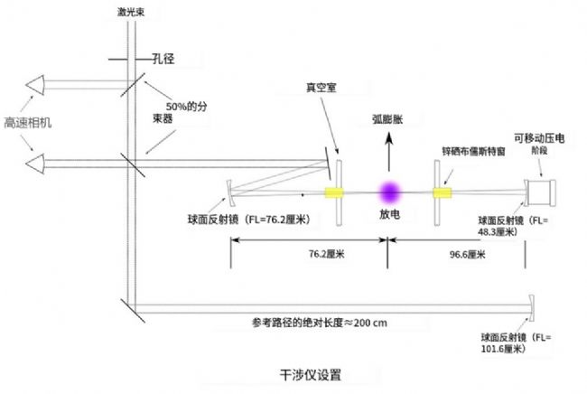 通過(guò)等離子體導(dǎo)致的光路長(zhǎng)度變化的總時(shí)間分辨率約為10ns。應(yīng)該提到的是,圖所描述的情況是一種強(qiáng)有力的簡(jiǎn)化。從圖可以看出,放電電弧在通過(guò)激光束開(kāi)始扭結(jié)。在電弧膨脹方向上的扭結(jié)導(dǎo)致膨脹速度的波動(dòng)。此外,垂直于電弧膨脹方向的扭曲可導(dǎo)致激光束不再垂直于其正常值通過(guò)等離子體橫截面,而是在一定角度下通過(guò)。結(jié)果,圖中所示的圓形橫截面將變?yōu)闄E圓形。