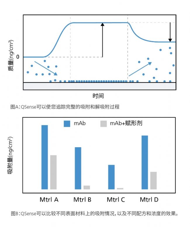 2.優(yōu)化輔料與包材篩選策略: 通過快速評估不同表面活性劑、緩沖液配方以及包裝材料對蛋白吸附和穩(wěn)定性的影響,QSense QCM-D 能夠顯著縮短篩選周期,幫助找到最優(yōu)的輔料組合和包裝方案,降低研發(fā)成本。