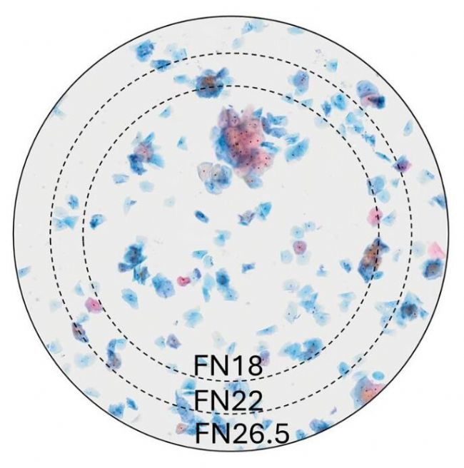 在這種情況下,如果此時結果已具有診斷意義,即可停止計數(shù)。如果結果處于臨界值,可繼續(xù)計數(shù)至 10個高倍視野,并應用內插校正系數(shù)。由于與 FN22 相比,被評估的樣品面積增加了 31%,因此在確認診斷時具有統(tǒng)計優(yōu)勢。