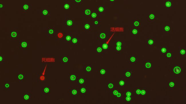 基于明場成像的圖像分析法原理:正常的活細胞,胞膜結(jié)構(gòu)完整,能夠排斥臺盼藍,使之不能夠進入胞內(nèi);而喪失活性或細胞膜不完整的細胞,胞膜的通透性增加,可被臺盼藍染成藍色,通常認為細胞膜完整性喪失,即可認為細胞已經(jīng)死亡。因此,被染色的細胞為死細胞,沒有被染色的為活細胞。
