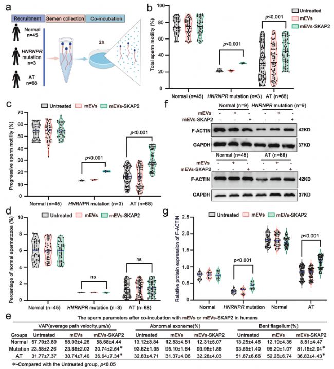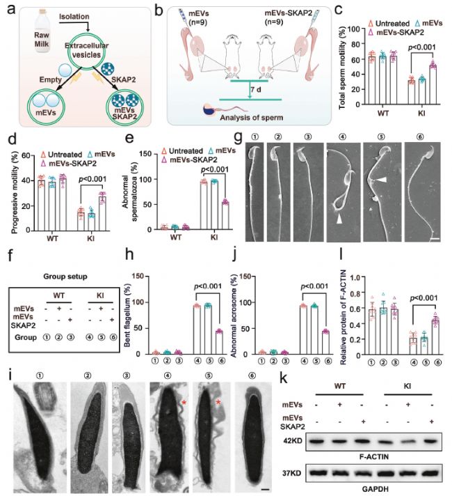 圖7:mEVs-SKAP2改善KI小鼠精子活力及形態(tài)(原文圖7c-e)