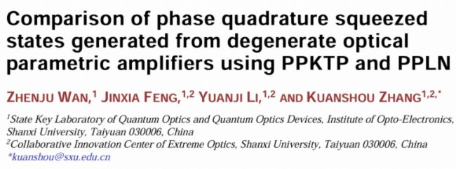 1. Wan, Zhenju, et al. "Comparison of phase quadrature squeezed states generated from degenerate optical parametric amplifiers using PPKTP and PPLN." Optics express 26.5 (2018): 5531-5540.