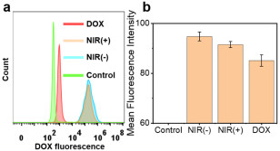 (b)流式細胞術定量分析游離DOX和Fe3O4-DOX的平均熒光強度
