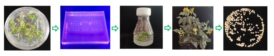 以葉片、莖段和試管薯作為轉(zhuǎn)基因受體材料,用攜帶目標基因載體的農(nóng)桿菌侵染受體材料,將T-DNA插入到基...