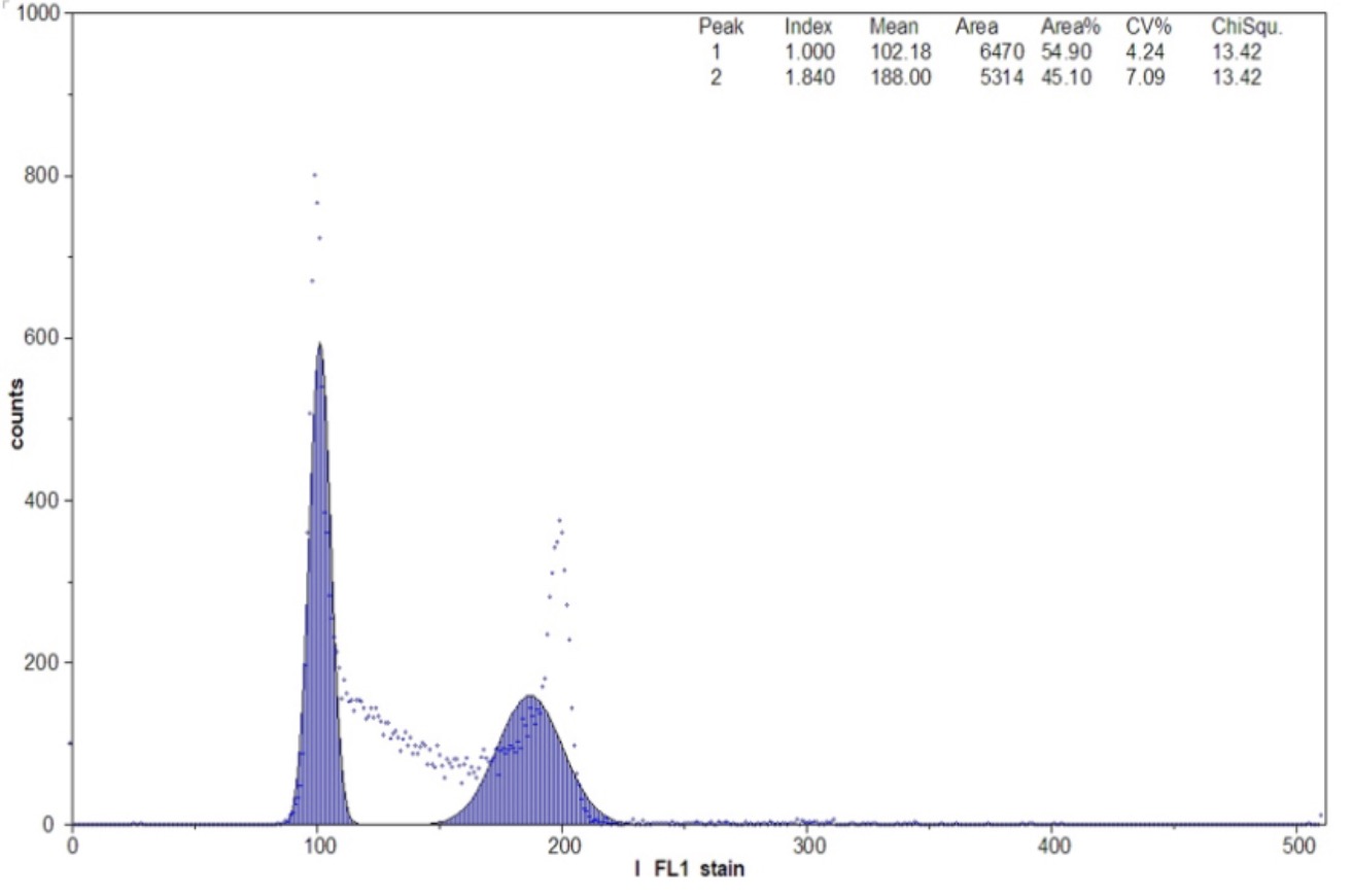 樣本峰值的熒光強度與細胞DNA含量成正比,利用已知基因組大小的樣本(如番茄、小麥等做為對照,根據對照...