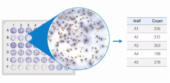 安捷倫 BioTek Cytation 9 細(xì)胞成像多功能微孔板檢測(cè)系統(tǒng)的正置顯微成像模塊可實(shí)現(xiàn) ELISpot 等分析的自動(dòng)化,ELISpot 分析通過顯色斑點(diǎn)反應(yīng)來判斷細(xì)胞的分泌情況。Cytation 9 可進(jìn)行全自動(dòng)圖像采集、處理、圖像分析和斑點(diǎn)計(jì)數(shù)。