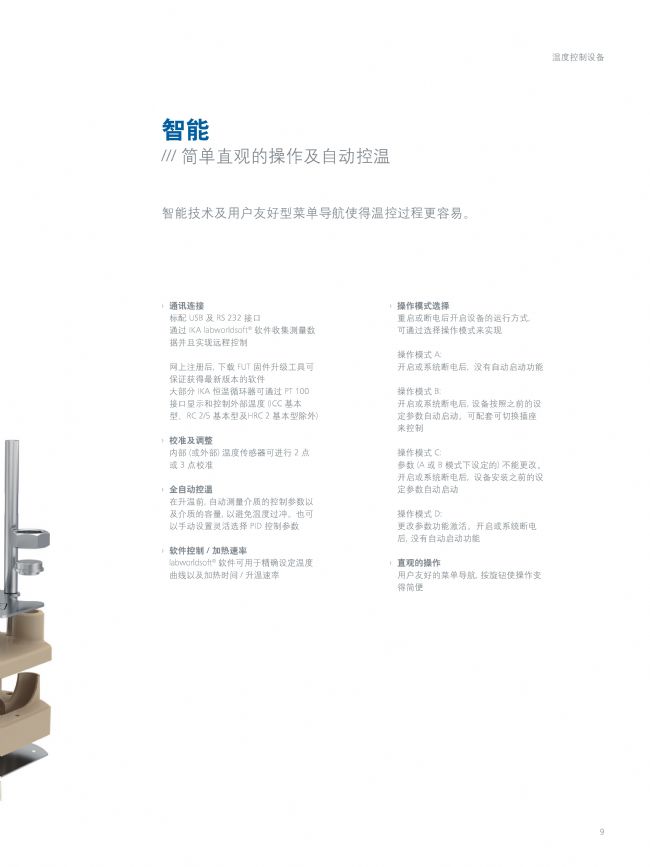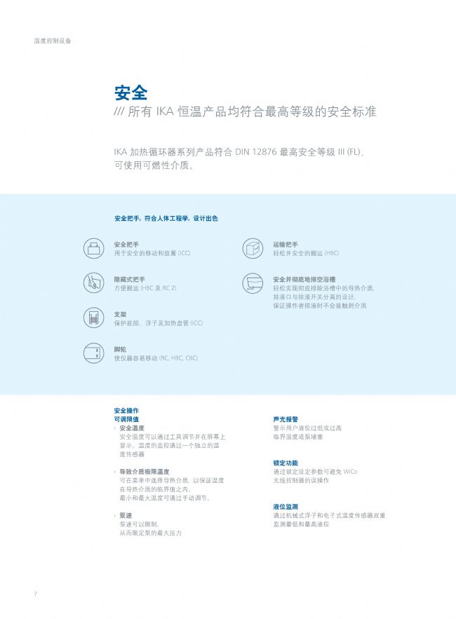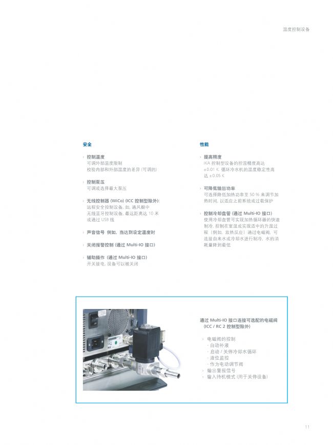 IC basic pro 20 c 套裝: 為IC基本型浸入式加熱循環(huán)器增加適合的配件以完善您的控溫系統(tǒng)。IC基本型浸入式加熱循環(huán)器擁有靈活的浴槽伸展架。它可用于敞口/封閉條件下的液體溫度調(diào)和,溫度最高可達(dá)200°C。得益于其強(qiáng)勁的內(nèi)置壓力/抽吸泵,IC浸入式加熱循環(huán)器可應(yīng)用于各項(xiàng)內(nèi)外控溫應(yīng)用??蛇B接內(nèi)置冷卻盤(pán)管將溫度調(diào)至接近環(huán)境溫度。所有的IKA®恒溫循環(huán)系統(tǒng)系列產(chǎn)品均通過(guò)UL認(rèn)證,并達(dá)到DIN12876關(guān)于使用可燃性液體的最高使用安全等級(jí)III (FL) 。IC基本型浸入式加熱循環(huán)器可進(jìn)行快速加熱,溫度穩(wěn)定性為± 0.02 K 。